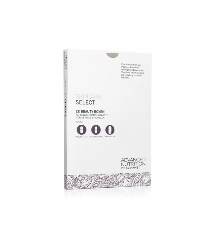 In diesem Produkt sind die Advanced Nutrition Programme Nahrungsergänzungsprodukte Skin Antioxidant, Skin Vitamin A+ und Skin Omegas+ in 28 Beauty Boxen enthalten, wobei die Anwendungsempfehlung bei der Einnahme des Inhalts einer Beauty Box täglich liegt.